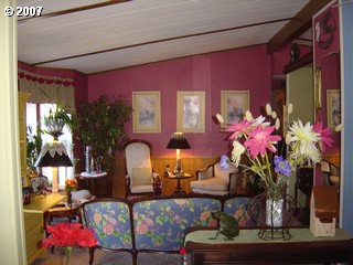 Description: Large, 1620 Sq.Ft. MHD 4 br, 2 ba, nicely decorated, awesome floor plan, covered deck, carport, garden area, fenced yard, and private. Located in a 55+ park in Roseburg. Very nice.