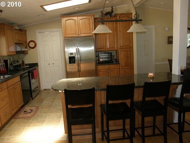 Description: Lovely completely updated kitchen to include; very nice cabinets with pull outs, high quality granite counter-tops, deep stainless sinks, tile appearing interlock flooring in kitchen. Laminate flooring in master bedroom, dining area, entry, living room. Quality vinyl windows so you don't hear road noise. Island breakfast bar with 4 very nice stools.