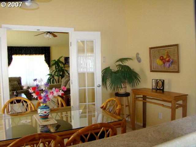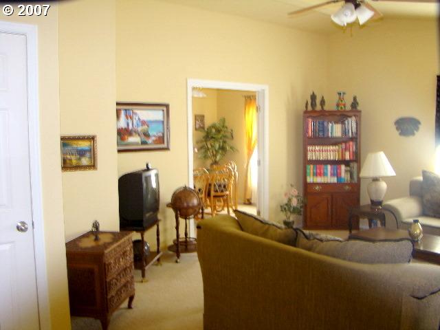 Description: Senior gated comm., on the bank of Umpqua, like new 1300sqft 2004 home 3BD/2BA Open floor plan South Western style terra-cotta exterior Appl. included. Attached 2 car garage, extra parking. Front porch overlooked a running brook. Front lawn and grounds maintained by management. Many other water features in the park, fountains and koi pond. Beautiful club facilities and library.