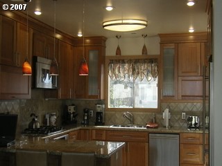 Description: Beautiful new kitchen w/cherry wood cabinets. Granite counters & new appl. Gas fireplace in living room, teak hardwood floors, covered patio w/skylights. 2 detached shops/garages plus a garden shed. Lot is flat; useable & low maintenance;has fruit trees, tons of parking & an RV hookup.