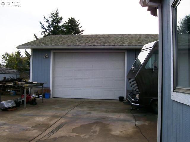 Description: 34 X 48 shop built in 1999, 2x6 construction, fully insulated, 6" slab floor, 3 tab 30 yr roof, woodstove & gas heat, air comp. Also guest quarters with 14x16 kit/L room combo, 12x15 bedroom, full bath and laundry. Lots of paved parking and fenced yard.