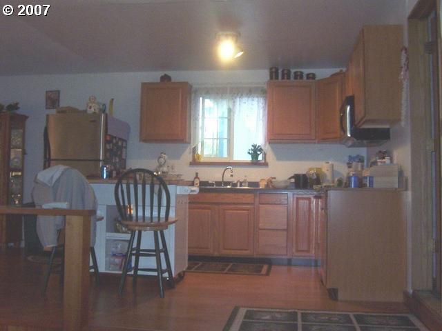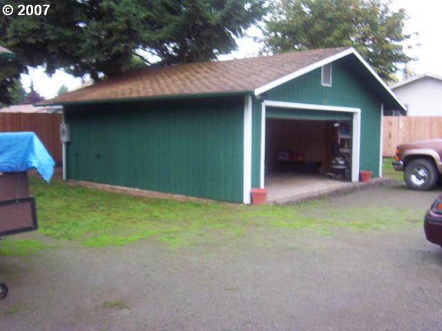 Description: Adorable 1080 sq ft home with 3 garages 5 car parking, plus RV parking on .34 acre. Could add onto home by converting 1 garage. Newly remodeled with new windows, carpet, lam floors, cabinets. Has sauna in bathroom, 2 showers, wood stove, built in micorwave, all level lot, low county taxes.