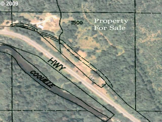 Description: Coquille River Frontage, Bargain Basement Prices—Approx. 7 acres on the Coquille w/ fixer farmhouse. Hwy 42 divides property, and while the riverfront is perfect for fishing, camping or relaxing, you can’t build right at the river. Instead, fix up this 1896 built, 3 BDR in poor condition, or build a new home above the river. A great value. Eager seller will consider all offers.