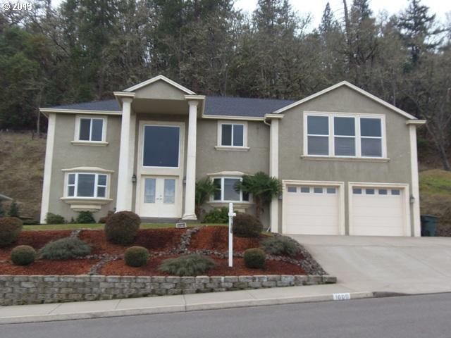 Description: Fabulous views of Roseburg and surrounding mountains from this elegant, spacious home. Great room design features sunken living room w/gas fireplace, dining area, kitchen w/two pantries, granite counter tops. Dining room. Sweeping staircase to upper level with private living area. Fabulous formal master suite. Extra deep garage and paved RV parking.