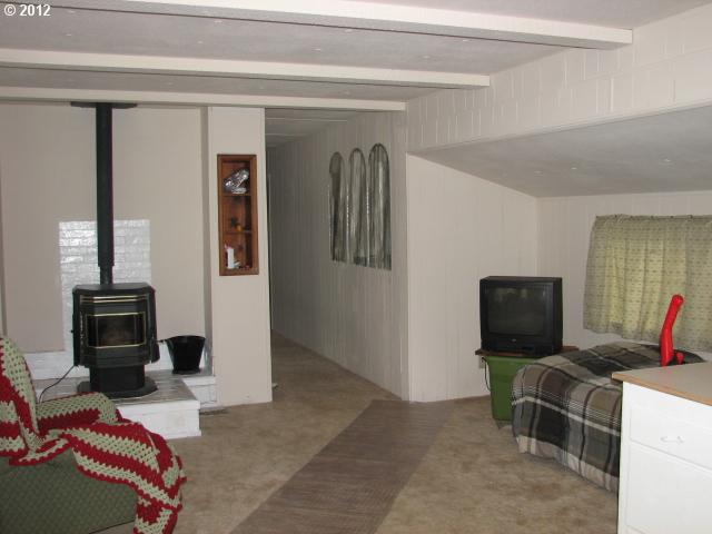 Description: Located in quiet culdesac in desirable Shore Pines Bay Village. New vinyl windows, some updated plumbing and flooring. Stove, refrigerator and pellet stove included in "as is" condition. Washer & dryer negotiable. Attached green house, new shed. Must be park approved. Space rent $385.50