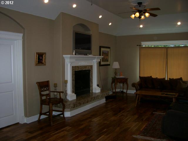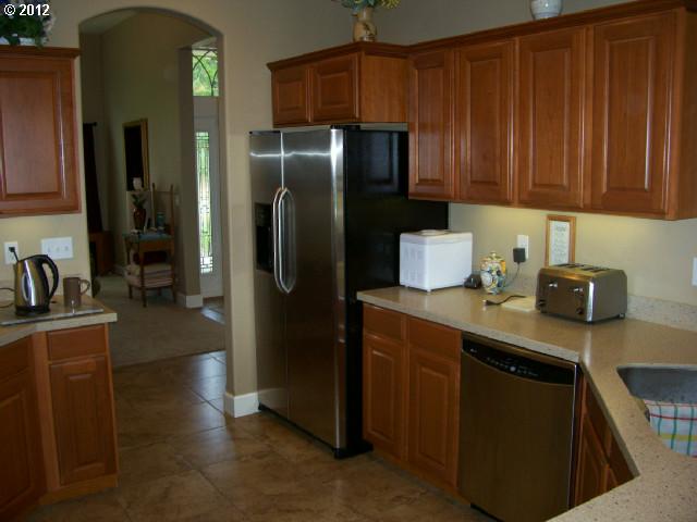 • Description: Golf course frontage view, quality home, very quiet setting. New hardwood floors & carpet, new $5,000 gas electrolux range stays. Cherry cabinets, eat bar, recessed lights, coffered ceiling, beautiful master suite with seperate tub & shower, landscaped, covered patio, rod iron fencing and much more.