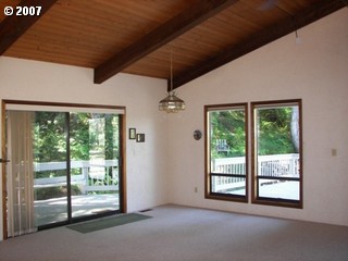 Description: CLOSE TO RESERVOIR, Beautiful custom home in a treed, private, country setting with great views. Decks on three sides, vaulted open beam cedar ceiling, open floor plan, rock fireplace with wood stove insert. Also includes pellet stove and sauna. New 30 year roof. 3 bd, 2 ba with family room. Includes adjacent lot for total of 1.23 acres.