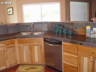Description: Custom 2006 home! High quality interior! Must See! 3 bedroom, 2 bathroom, custom hickory kitchen with slate counter tops, mahogany laminate floors, stainless steel appliances, natural gas fireplace, custom tile work throughout the house, oversize garage/shop, RV pad, REDUCED! $375,000