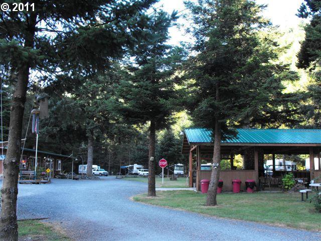 Description: Live & work resort hideaway along river!26 30amp fllhk-up sites; 3 custom cottages w/modern comforts each w/deck on river; center pavilion covered w/rock frplc & outdoor cook center,great rm w/fireplace,kit.,big TV & new pool rm.River access w/1100+ft & 900+ft hwy. Nice home for owner/mgr shop. Salmon/steelhead/trout/eagles/elk/deer/bear outdoor lover's dream.45 min to coast.