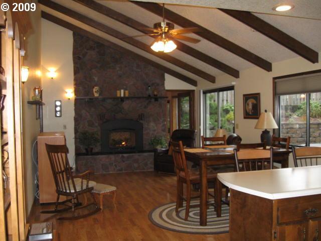 Description: "Location, Location" PLUS "Condition, Condition"!!This gorgeous house needs nothing! Vaulted, beamed family/great room, formal living, tiled sunroom/office, impressive rock fireplace w/new propane insert, heat pump, and an attached huge (approx.24x40) garage/shop. The gorgeous landscaping w/composite deck & private back yard make it a winner outside as well as in!