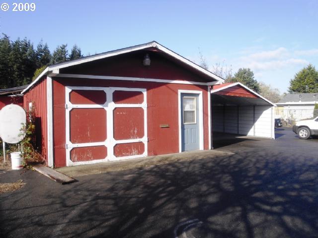 Description: Great location for small business on Broadway in North Bend. Nice paved lot for parking, small home with garage and carport. Previously was the shoe repair shop in red building. Shop rewired for 220.