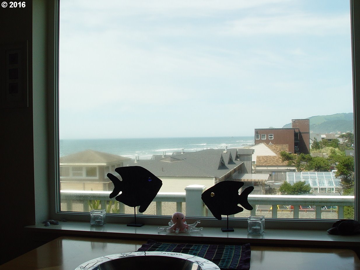 Description: Almost oceanfront! Gorgeous townhouse in 6-unit complex next to public beach access in NW area. Enjoy spectacular views of surf, sand, Cascade Head .. and city lights at night. Attractive interior .. warm & bright. Gas fireplace in L/R. Upper loft is furnished for use as Den and/or 3rd Bdrm. Large Utility Rm offers abundant storage; washer/dryer included. Attached garage. Move-in ready!