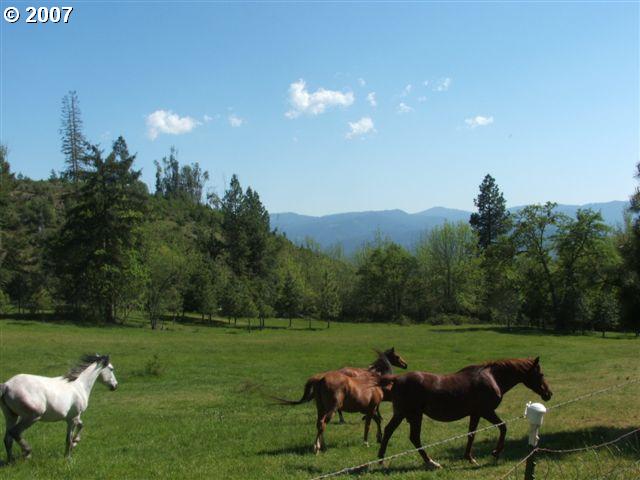 • Description: Sweeping pastoral 160 acre private ranch w/ evergreen forests, ideal for horse/cattle operation or farming, poss airstrip site. Bordered by US forestry. Off the grid 2416 sq ft custom home, barns, numerous springs, panoramic views & abundant wildlife. Lots of fruit trees, fir, madrone, cedar, pine, oak & ash.