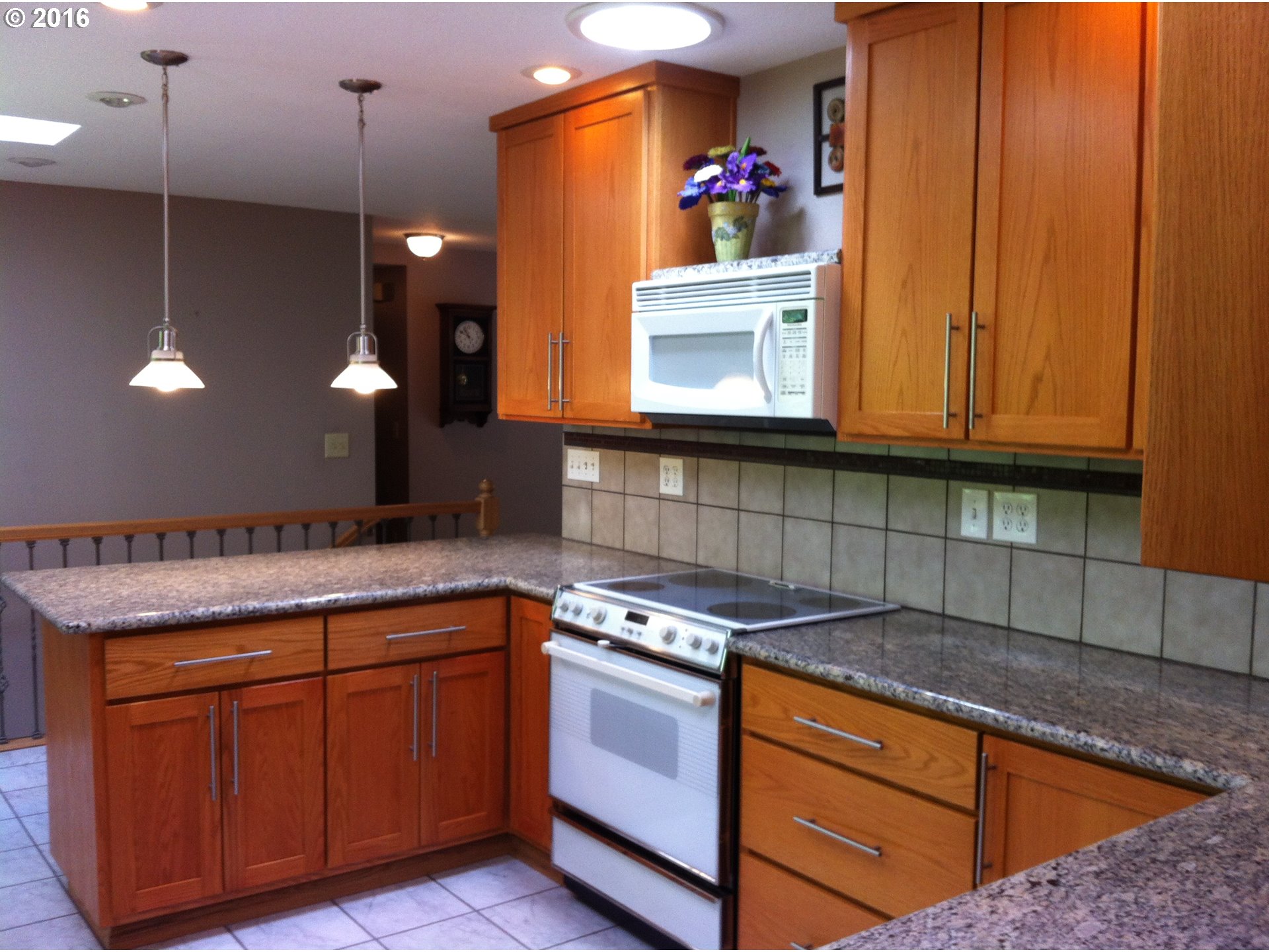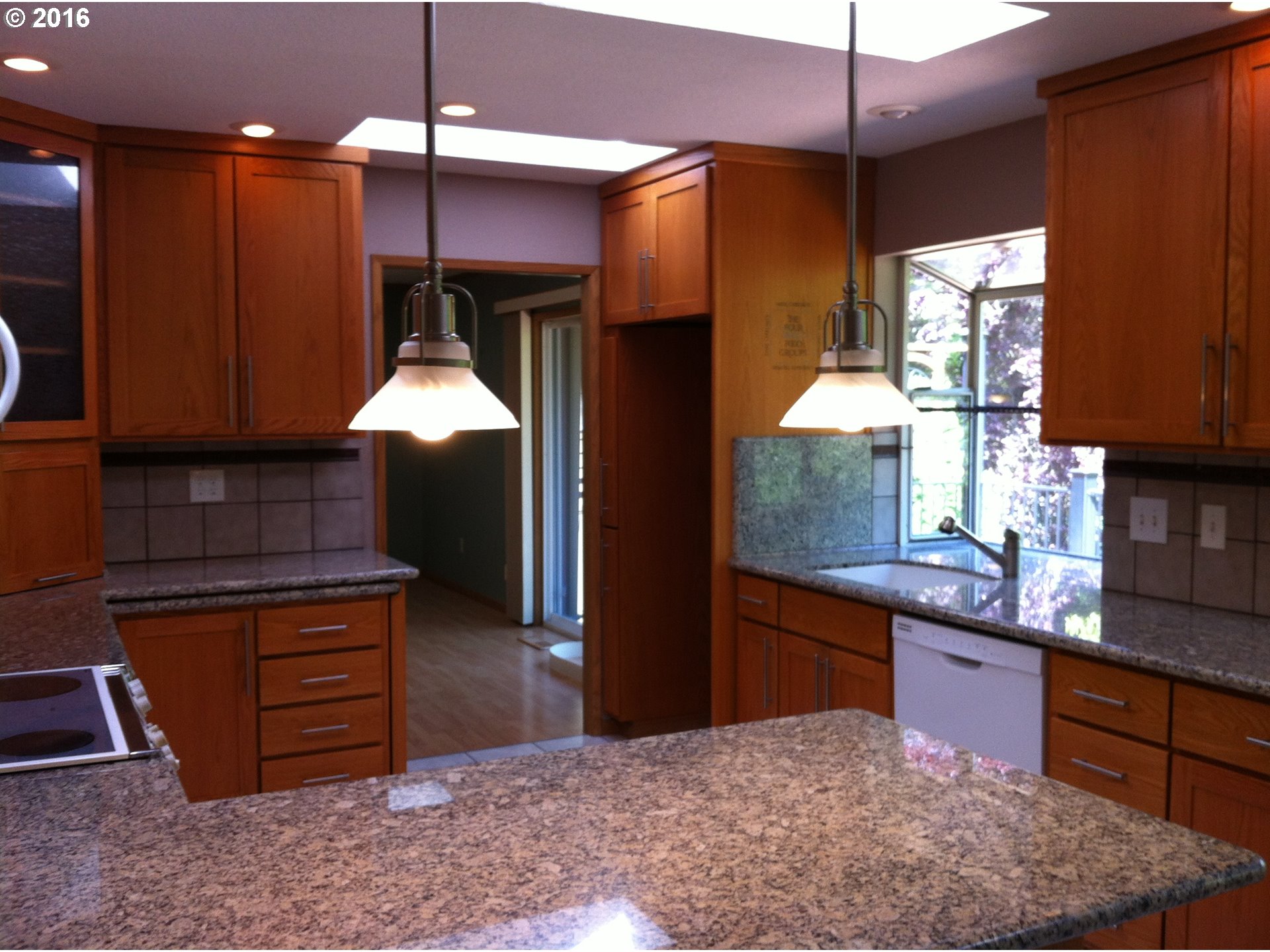 Description: Large walkout daylight ranch w/lots of room & storage on a big, landscaped lot. Spacious living room w/bay window. Beautifully remod kitchen w/custom cabinets, granite counters, roll-out island, garden window, brkfst bar. Formal dining w/fplce, slider to deck overlooking lovely yard & small creek. Plenty of room in lower level for activities, + shop. Big windows, skylites & solar tubes add great light; solar panels offset electric bill.