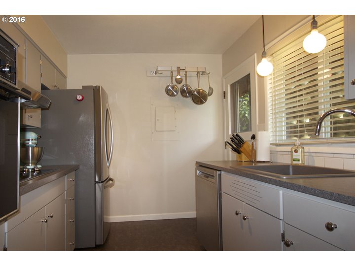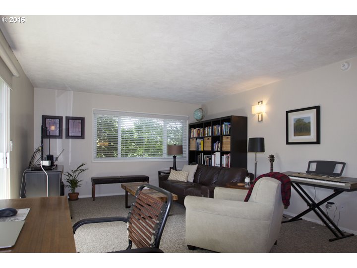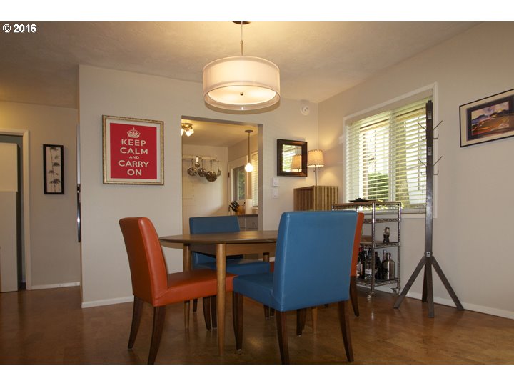 Description: OPEN SAT 6/4 10-1. Charming Mid-Century Modern ground floor corner unit condo in Multnomah Village. Walk to Village or Gabriel Park, or grab 1 of 4 bus lines on Vermont to OHSU & downtown. Spacious open floor plan w/fireplace in living room. Updated kitchen with premium appliances, lighting, hot water heater, bath and paint. Private, new outdoor patio w/attached storage unit and deeded parking. Lush, mature landscaping & outdoor pool.