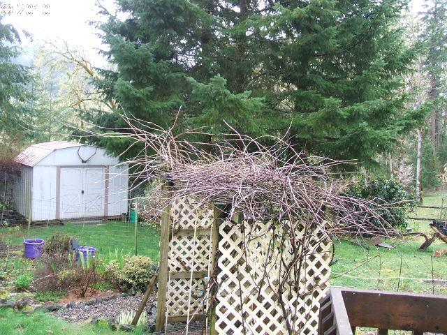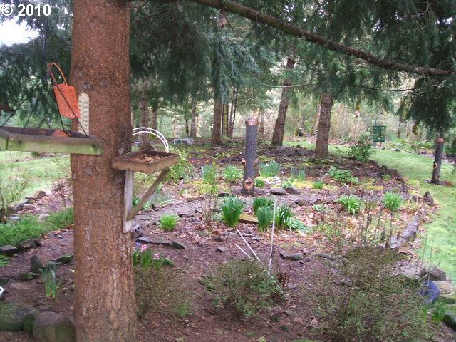 Description: Private setting with abundant fruit frees, flowers & perennial plants. Nature trails through the acreage for viewing birds & wildlife. Covered back deck, 30'x30' shop/garage, a good well & additional rainwater holding tank for irrigation. Garden and yard area are deer fenced.