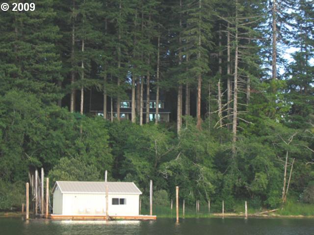 Description: Outstanding lake views and priceless privacy from this beautifully maintained, fully furnished 3 bdrm, 2 bath retreat secluded atop a forested ridge overlooking the Oregon coasts top sport fishing and water sports lake. Complete interior and exterior remodel.This boat access gem includes a large twin bay boathouse with a recent model Sea Ray on a Airdock Boat Lift