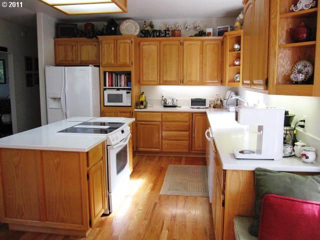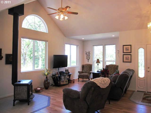 Description: This home has open floor plan, wood stove and lots of windows to illuminate the hardwood floors. Kitchen/dinning room with Corian counters, Bosch dishwasher, large prep sink & window seat. Master suite is on the main level. Large bedroom upstairs has skylights and 1/2 bath. This property has RV parking, easy landscaping with drip system, a storage shed & room to build a shop.