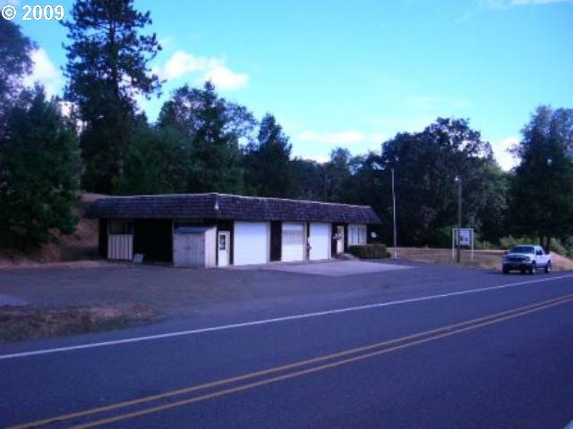 Description: The old Melrose Fire Station. 2 bedroom, 1 bath facility with kitchen & living area. 3 bay garage with roll-up doors. Umpqua Basin Water!