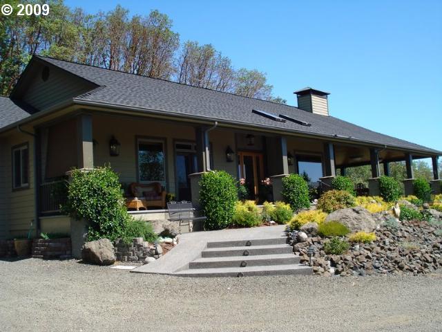 Description: Custom built gorgeous home with views to match in gated community. 4 BR,3.5BA, (3150SF)Great room, Gourmet kitchen, hardwood, porcelain tile,stainless steel appliances, fireplace, wrap around porch for year round entertainment. All this on 10 acres w/UBWater (5Kgallon holding tank) just minutes to Roseburg.Home is impeccably decorated and may be sold furnished or unfurnished.