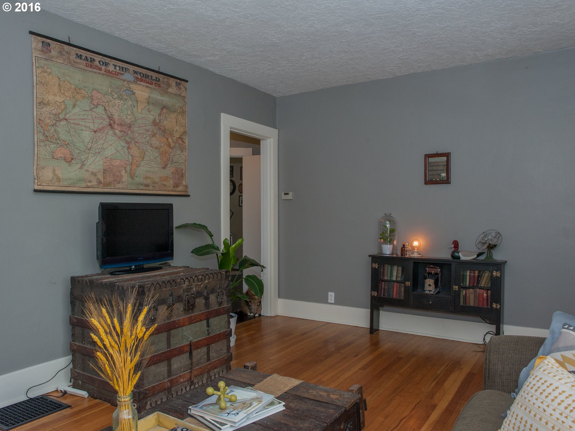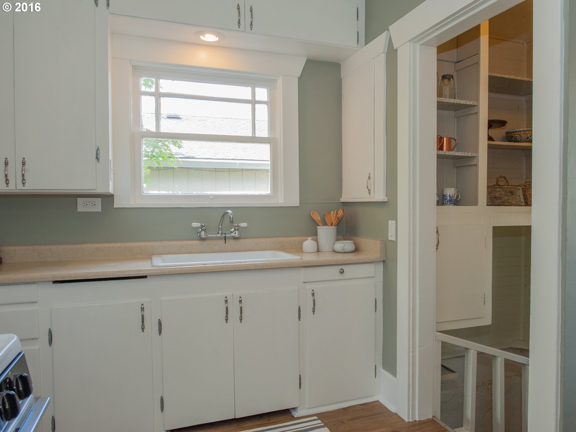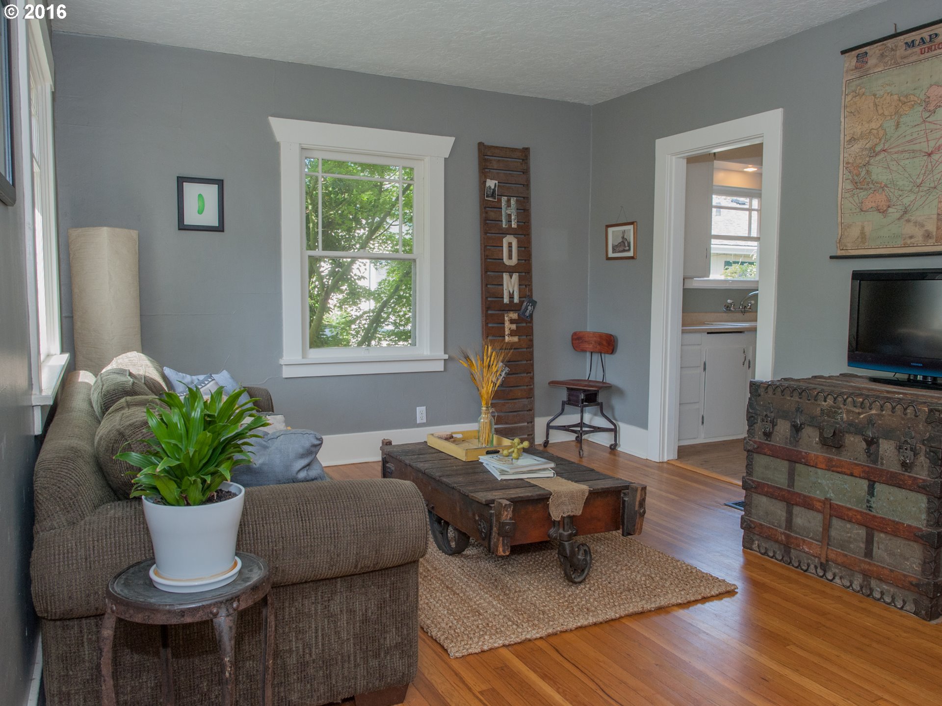 Description: Located on a quiet stretch of SE Steele, the house sits on a beautifully manicured, private lot that is fully in bloom. Two patio areas, sweet smelling flowers, raised bed. And inside, this 2 bed, 1 bath is amazingly cozy and sweet. Lots of vintage touches, from the sweet front sweet front porch to the high ceilings, and the clawfoot tub and hardwood floors. Lots of extra space in the unfinished basement and oversized detached garage.