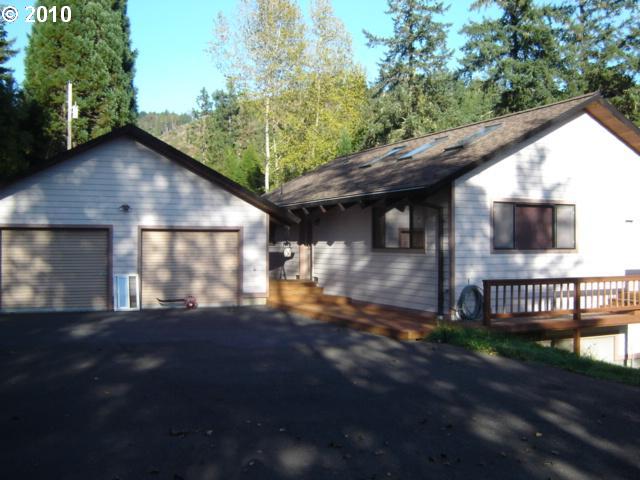 Description: This home has a private setting on Elk Creek and a stone's throw to the Umpqua River. It is designed as a two bedroom, two bath home but can easily be changed into a three bedroom house. The surround patio and acreage sets it above a normal city home. A must see property. Note: The acreage is subject to change.
