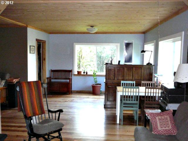 Description: Fabulous Farmhouse 31.48 acres approx 1000ft river frontage with a gravel bar to enjoy. Lovingly updated. Gorgeous myrtlewood floors, new woodstove,siding and roof.Close to town. A "retreat" with room to play, garden, skip rocks, raise livestock, ride horses. New 24 x 28 shop, wood shed & poultry coop, existing 40 x 45 ft barn near pasture. Must see, you won't want to leave.