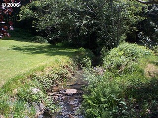 Description: Enjoy almost an acre of land with year round creek on this property! Beautiful setting of rolling lawns, trees, creek, older 2 bedroom mobile with charming living room add on with view. Includes comfy deck, 3 storage sheds (one with power), RV dump and great treed picnic area.