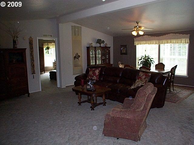 • Description: On 2.78+/- acres just outside Coquille is a lovely 1993 manufactured home with large airy rooms; propane appliances and water heater; greenhouse; 40x60+/- clear span shop (wired for 220) with attached 12x60+/- covered parking. Mature fruit trees, garden area. Reroofed/repainted 2009. New carpet, oven & dishwasher 2011. Adjacent acreage also for sale. Owner may carry. $279,000.
