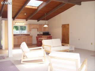 Description: OCEAN SOUNDS GETAWAY! This 3 bd, 2 ba, home on 3 ac. is light & bright. Features NEW roof, kit.tile floors & counters, kit. cabinetry, & carpet. Vaulted ceiling, skylights, & FP. Less than 5 min. from Bandon Dunes Golf Resort, walking distance to the beach. Agent owned. #168