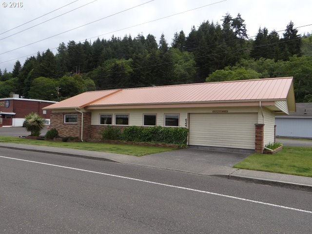 Description: Wonderful commercial building with many possibilities located in the heart of Reedsport. Remodeled with metal roof, vinyl windows, heat pump, paint, and more! Dedicated parking and easy access make this a very attractive property. Would be great for a coffee shop, gift shop, hair salon or professional office. Be creative and become your own boss! Low interest rates and a great price makes this a rare opportunity on the coast!