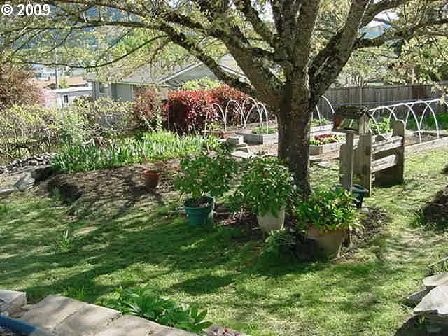 Description: One level home with nice view overlooking Sutherlin. Yard is a gardener's dream, large 28' x 36' shop plus a garage. 3 bedroom, 2 bath home, newer central gas heat & air conditioning, most windows have been upgraded, private front court-yard with water feature.