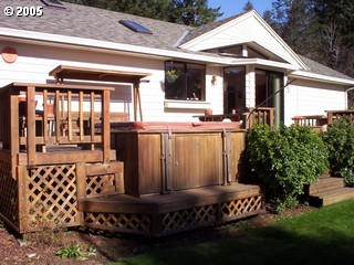 • Description: Pride of ownership in this remodeled home with view of Coos Bay. Nice deck with built-in hottub. Large oversized heated garage and 40 x 72 shop. Insulated and heated office in shop. A shop owners dream!