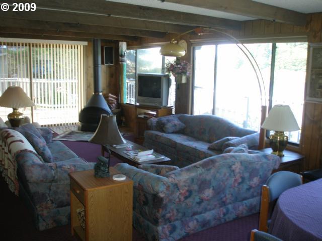 Description: Immaculate 2 bdrm 2 bath with family rm on the shore of Tenmile Lake. Well maintained road access convenient to town. Fabulous views, lots of glass, nice dock and boat house with protection boom. Selling fully furnished. Excellent retirement or vacation home. Take advantage of one of Oregons finest fishing and water sports lakes and the Oregon Dunes all from the same home.