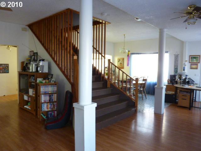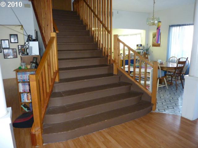 Description: 8bedrooms 3ba 2kitchens could be 2 family set up/foster care, very spacious living areas; fam rm, dining & kitchen. Entry foyer 8'x17' w/grand flared staircase kit has pantry closet & additional storage in laundry rm, laminate wd flr downstairs & carpet upstairs all wd flr, main kit w sidebyside frig/frez stove port dw, upstairs kit w stove/dw, 15x17 storage bldg w/loft, fenced