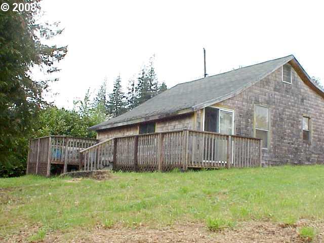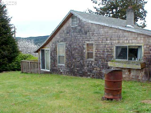 Description: "I CAN SEE FOR MILES ..." from this Coquille corner lot. Renovate the existing 2-bedroom home with cedar siding, dual-pane windows, large deck, double carport w/storage, and private yard; or replace a new home, taking advantage of the potential for a spectacular view. City services and utilities in place, including paved streets.