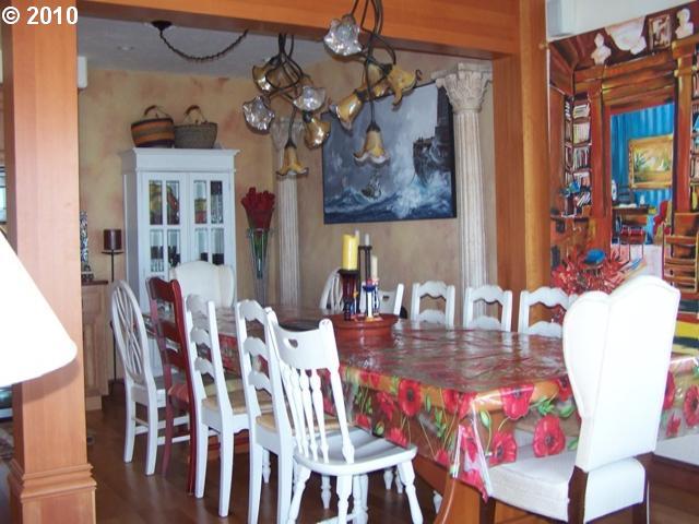 Description: Italian Ocean Front Villa in Bandon overlooking the Pacific Ocean, the beach & sea stacks! Remarkable views from every room. Private end of road location with full beach access. Three separate living quarters each with private entries, kitchens, beds, baths, laundry rooms & balconies. Offers are subject to short sale approval.