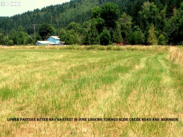 Description: Beautiful homesite with great views. Approx 6 acres pasture/crop land with irrigation rights. North Myrtle Creek runs through the property with 4 acres across the creek. Great soil for horses, cattle, pasture, gardening, vineyards. Well is drilled, septic installed for 4 bedroom home, power available. Owner will carry with acceptable terms.
