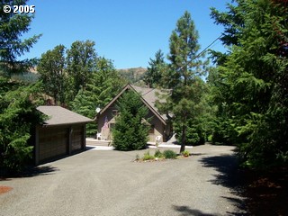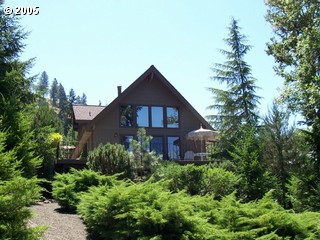 Description: Beautiful A-frame style home located on the famed N.Umpqua River in an area of custom homes. Large detached garage with RV parking on the side. Treed setting with view of the river from the home.
