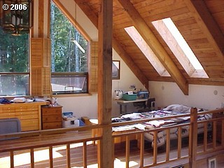 Description: PRIVATE & SECLUDED 2.95 acres close to town. Cozy chalet style, very open with exposed beams and cedar. Large loft for bedroom and studio. Gourmet kitchen with built-in oven & commercial gas range. 30' x 60' barn, 34' x 40' shop/RV garage.