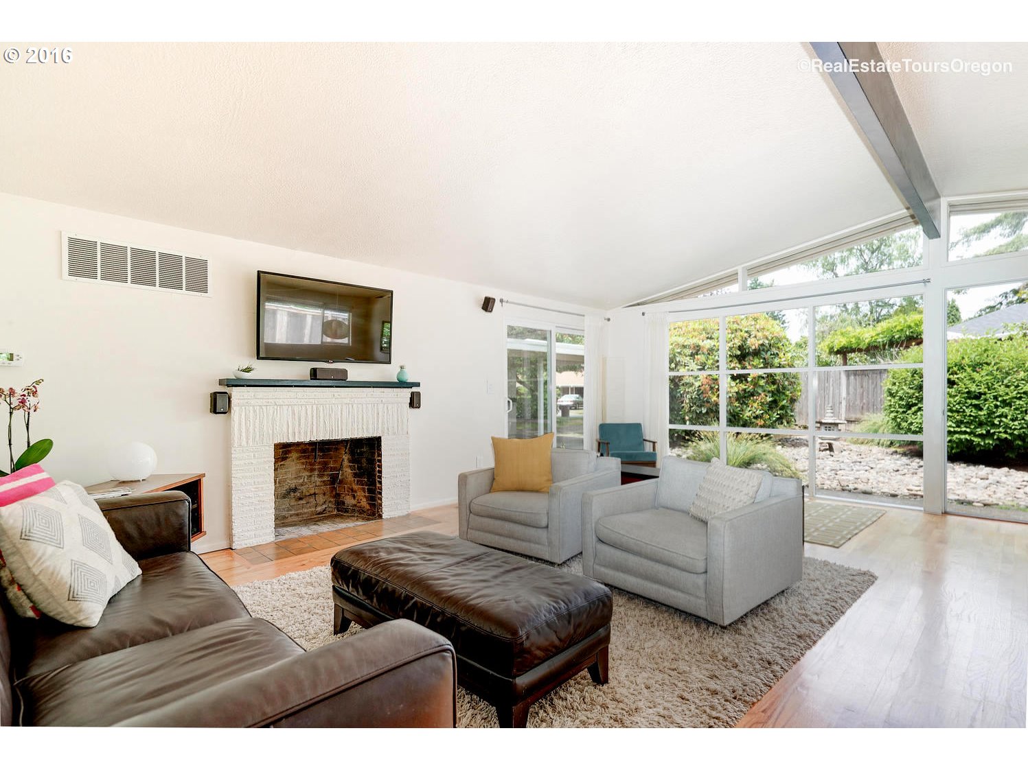 • Description: Modern Mid Century Home w/Architectural Design ~Sought After Neighborhood, Open & Bright Floor Plan w/Vaulted Ceilings, Large Picture Windows, Hardwood Floors Thru Out, Living Room w/Fireplace & Slider to Side Yard, Open Dining Area, Newer Central A/C, Private Yard w/Plenty of Entertaining Space with Deck & Patio...Walk to Several Neighborhood Parks, Community Garden and Sunset Transit Center! Easy Access to Downtown, Nike and High Tech