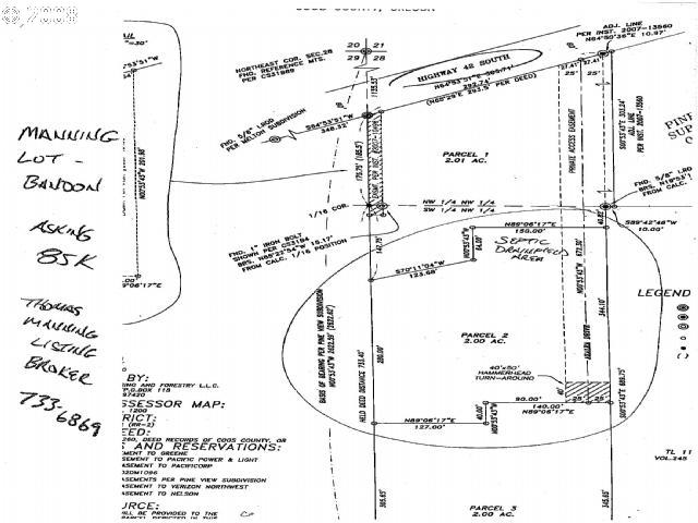 • Description: Seller holds an active Oregon real estate license. Attractive level 2 acre home site approx. 1 mile East of Bandon. Out of the fog and wind protected. Septic system approved (cap and fill) Room for shop, RV, Barn, Greenhouse and more. New manufactured home ok. Photo #2 shows septic drainfield area.